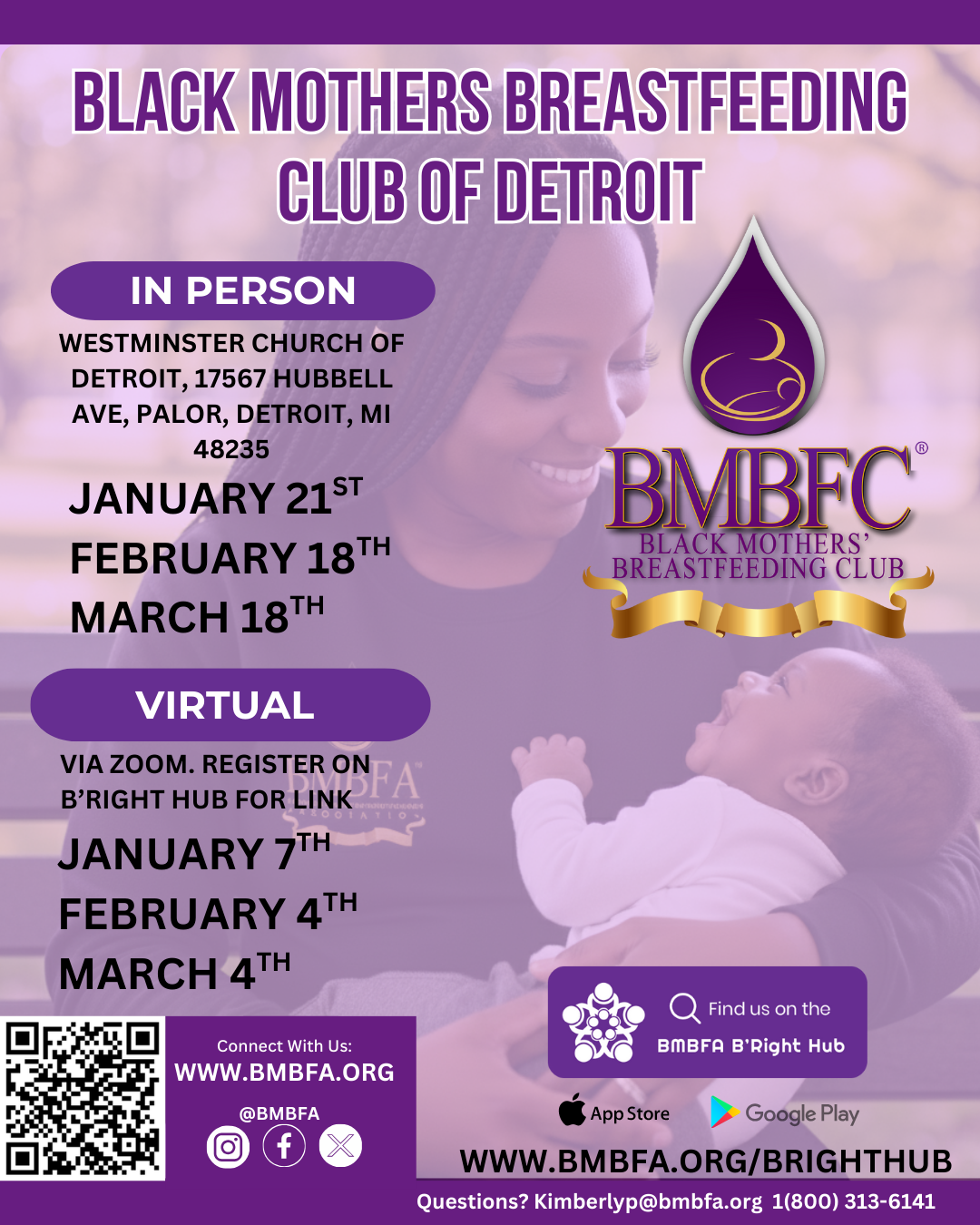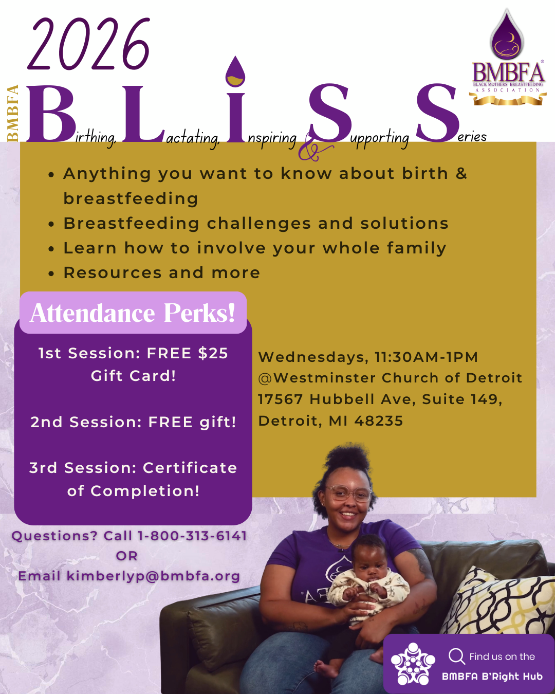 Birthing, Lactating, Inspiring, & Supporting SeriesLearn about birth & breastfeeding, tackle challenges, involve your family, and access helpful resources! Register through our Bright Hub app to attend.Questions? Contact Program Manager Kimberly Price.